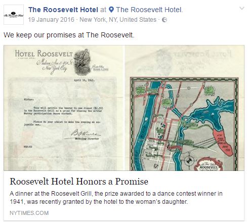 H Facebook σελίδα του ξενοδοχείου ήδη απέκτησε μια ξεχωριστή διάσταση στην ποιότητα των υπηρεσιών μέσα από τη δημοσιοποίηση της ιστορίας αυτής υπό τον εύγλωττο τίτλο «Κρατάμε τις υποσχέσεις μας».
