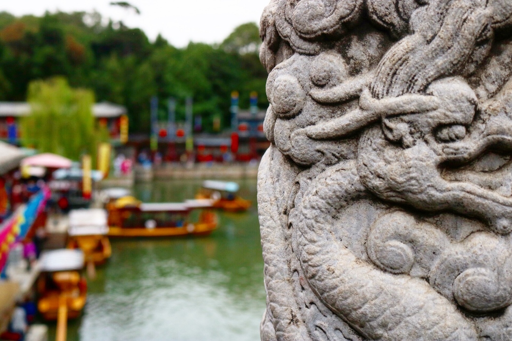 这里是中国建筑的自然美景,创造出一幅反映颐和园中令人印象深刻的湖泊的独特景观。