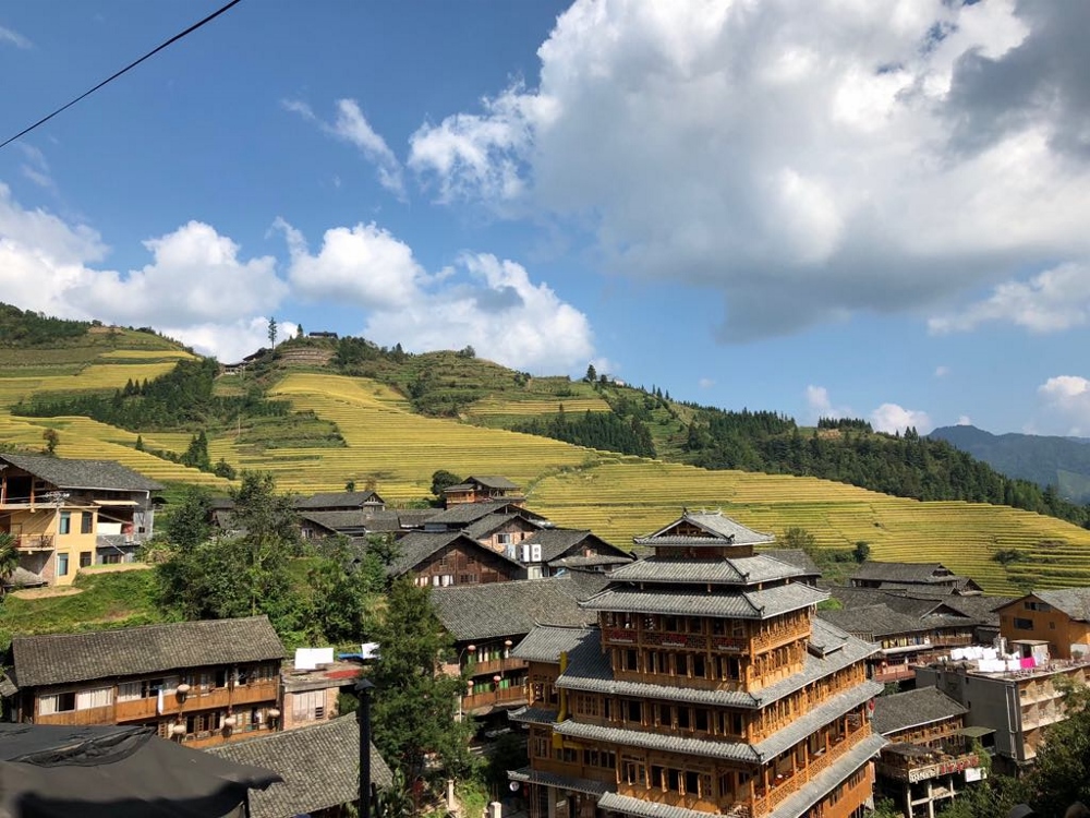 The first rays of the morning sun only enhance the intense yellow color shining on the mountain slopes. Hiking along the stone paths amongst the rice terraces of Longsheng village (龙胜梯田), one becomes captivated with the divine beauty surrounding the area. According to the locals, Longji -龙脊梯田(Dragon’s Backbone) received its name because the layered rice paddies resemble the dragon’s scales.
